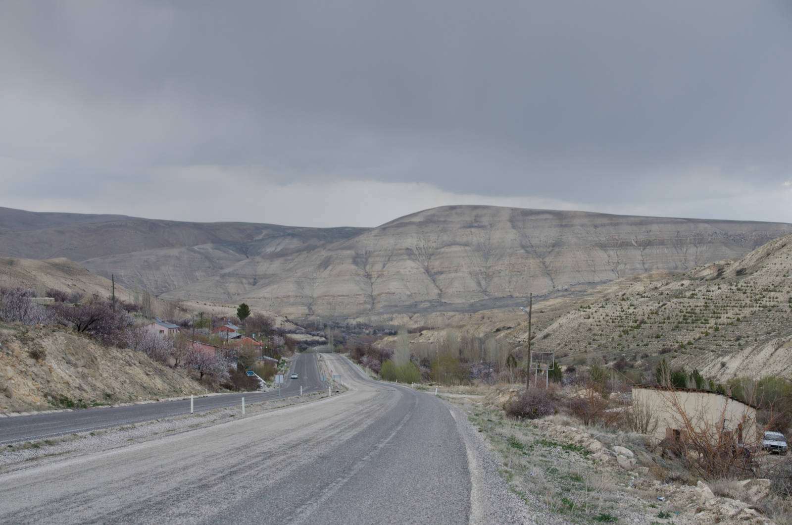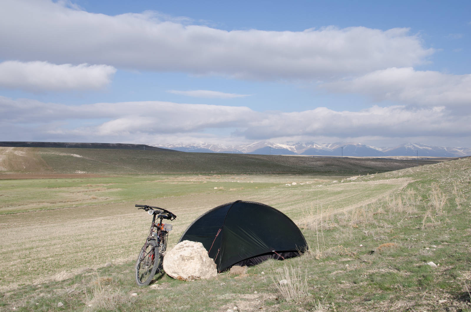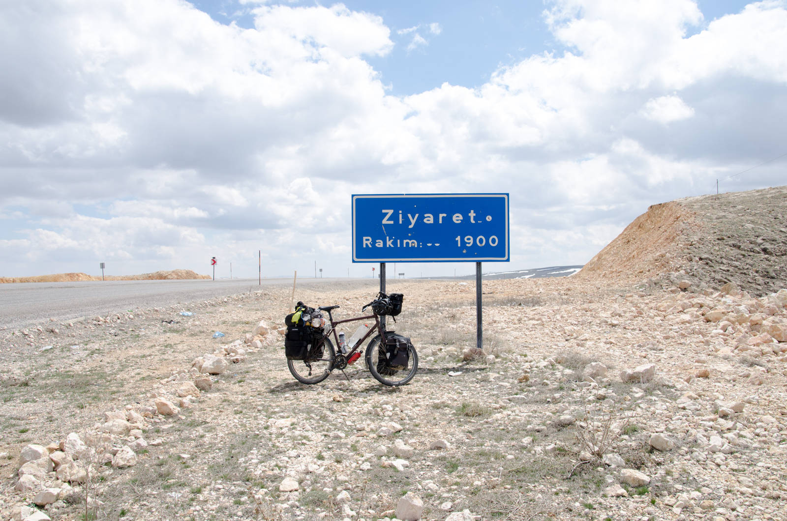 Diesem Ratschlag würde ich zumindest teilweise folgen. Während den nächsten Tagen ging es über Malatya nach Bingöl. Zwar hatte es auf diesen Strassen deutlich weniger Verkehr, aber als vierspurige Strasse hat es mir auch dort nur begrenzt gefallen. Deshalb habe ich immer wieder einige Umwege eingebaut, was ich aber meist nach wenigen Stunden wieder bereute. Weshalb? Nun, diese kleineren Strassen waren oft nicht gerade im besten Zustand, was wohl auch der Grund für meine nächsten zwei Platten war. Der grösste Umweg hat mir dabei gleich drei Rekorde eingebracht: Knapp 2100 Höhenmeter an einem Tag, ein lahmes Durchschnittstempo von 12 km/h und dies trotz Abfahrten mit meiner neuen Höchstgeschwindigkeit von bis zu 71 km/h. Dabei ist Höhenmeter nicht gleich Höhenmeter. Manchmal mache ich mehrere hundert Höhenmeter ohne auch nur über eine Pause nachzudenken. Nicht so an diesem Tag. Schon nach kurzer Zeit auf einer Kiesstrasse mit 13%-Steigung hat sich das Stopp-Intervall von Minuten auf wenige Sekunden verringert. Schleppend ging es so die Hügel hoch. Als ich dann am Abend die Strasse auf der Suche nach einem blickgeschützten Zeltplatz verliess und nach einigen hundert Metern über Wiesen meinte, einen solchen gefunden zu haben, musste ich feststellen, dass diese Wiese mit dornigen Pflanzen durchzogen war. So durfte ich im Halbdunkeln die Suche nach einem anderen Platz fortsetzen. Es gibt Tage, da wird einem nichts geschenkt!