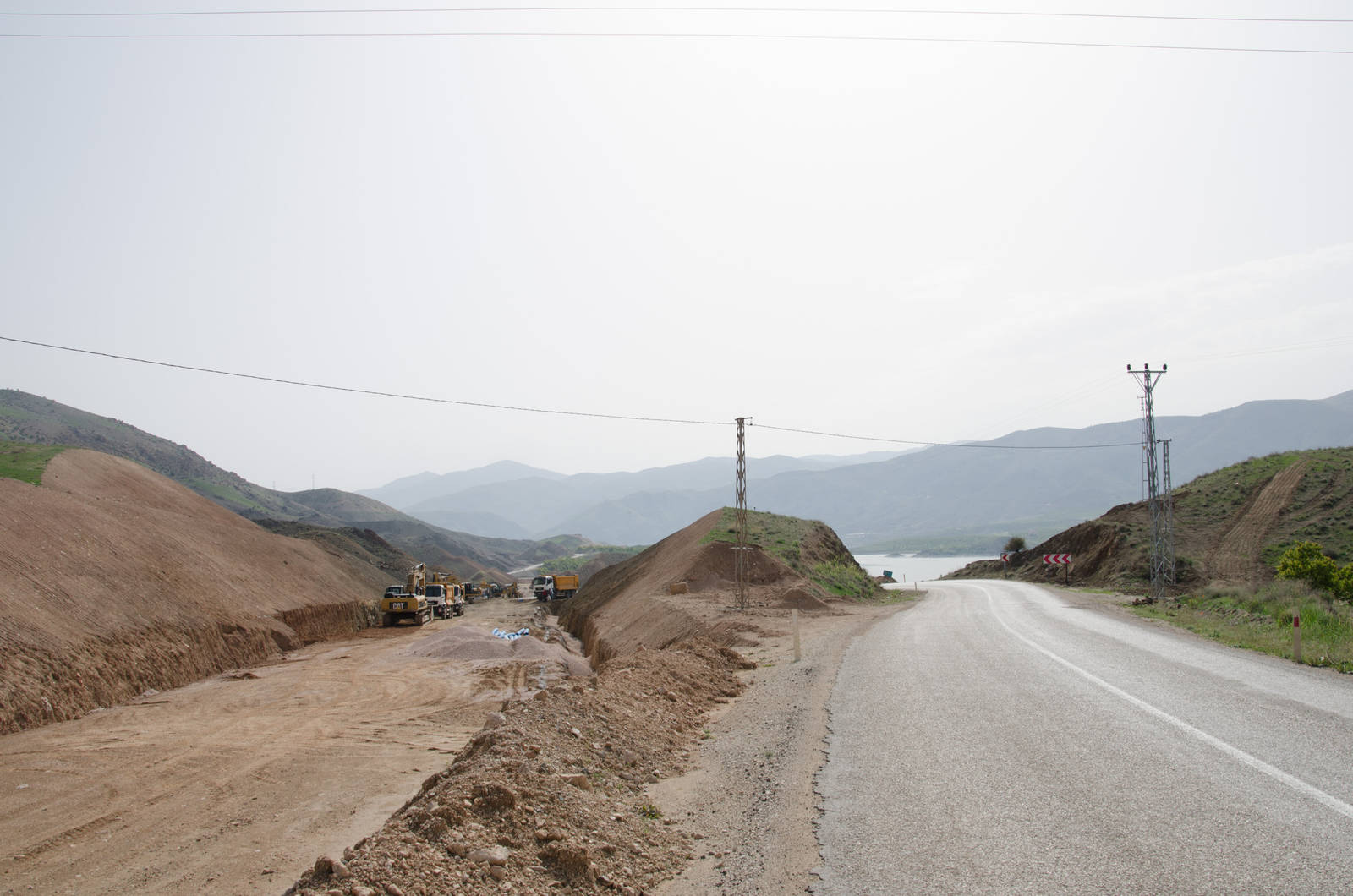 Abgesehen von diesen Kontrollen trifft man hier auch dauernd auf Baustellen. Teilweise werden halbe Hügel abgetragen und Schluchten verbreitert um den Platz für zwei zusätzliche Spuren für die Fernstrassen zu schaffen. Einmal stand ich plötzlich vor einem Stausee, der in meinem Karten-App noch nicht existierte. Stattdessen waren dort etliche kleine Ortschaften eingezeichnet, die nun irgendwo auf dem Grund dieses Sees schlummerten. Beeindruckend sind auch die Pipelines, die durch das Land verlegt werden. Eine dieser Pipelines muss einen Durchmesser von guten vier Metern gehabt haben. Einen solchen Bauboom habe ich vielleicht in China, aber sicherlich nicht in der Türkei erwartet.