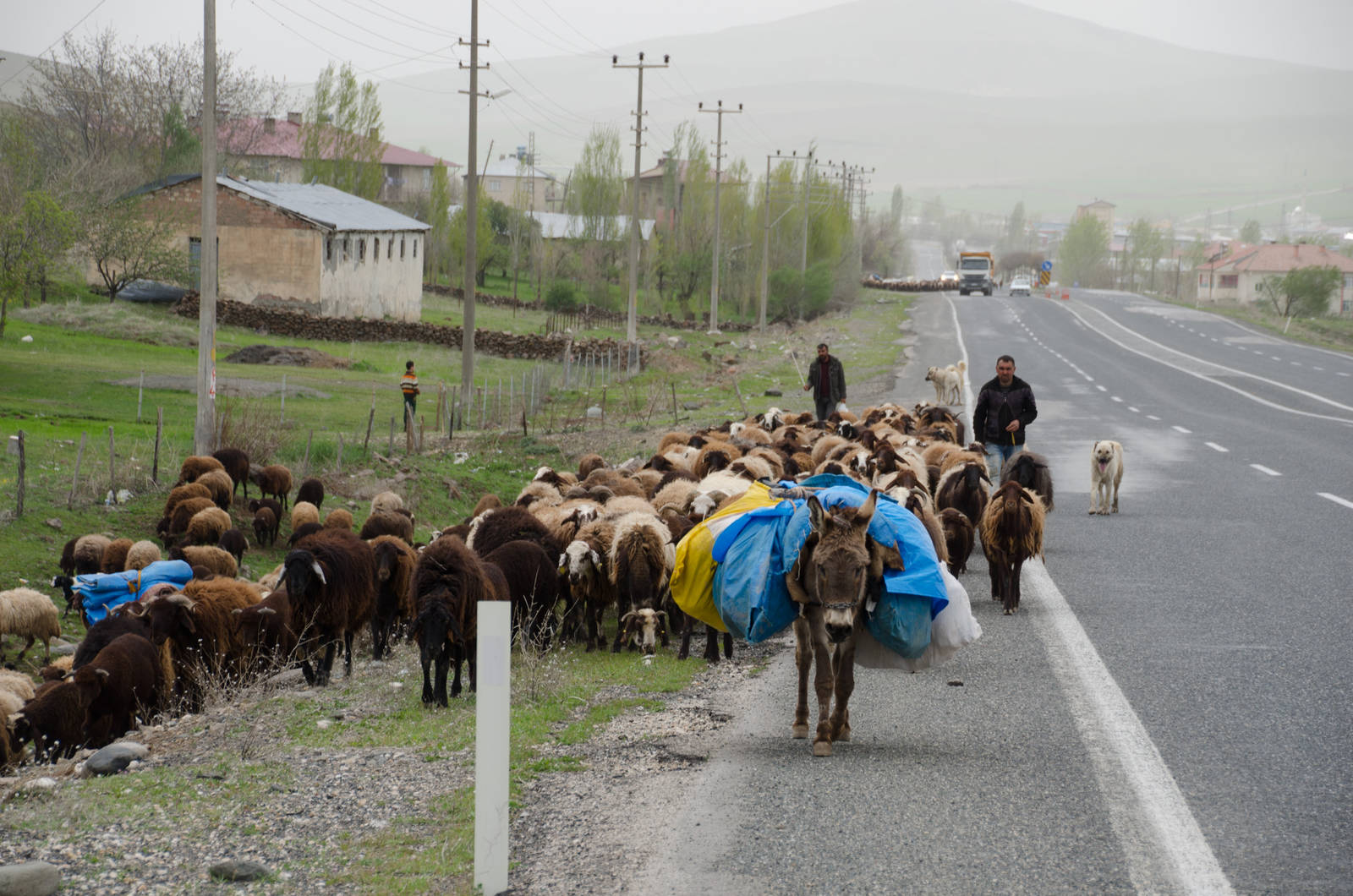 Eher unerwartet für mich war auch zu sehen, dass selbst im Osten des Landes der Ackerbau einen moderneren Eindruck als in Osteuropa macht. Bis auf 1800 Meter über Meer trifft man mehrheitlich auf moderne Traktoren. Wenn die Traktoren am Morgen auf die Felder oder am Abend zurück zum Hof fahren, kann man oft einen Mann in einem einfachen Anzug und eine Frau mit Kopftuch darauf beobachten. Die Viehwirtschaft hingegen ist noch immer sehr einfach. Immer wieder trifft man auf Herden, die von Hirten mit Eseln begleitet werden. Im Osten bin ich dann ab und zu auch auf Hirten gestossen, die noch Kinder waren und wo ich mich echt fragen musste, ob die nicht gerade in der Schule sein sollten.