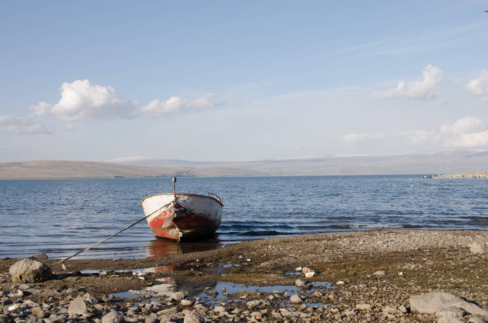 Wurde dir auch schon mal vom Kapitän einer Fähre der Maschinenraum gezeigt? Aber wohl kaum bei voller Fahrt und Beladung, oder?! Weil das Gras auf der anderen Seite des Sees einfach grüner aussah und ich auf meiner Karte eine Fährverbindung fand, entschloss ich mich die Uferseite zu wechseln. Zuerst einmal war dann aber der Hafen nicht dort, wo er auf der Karte eingezeichnet war, sondern mehrere Kilometer weiter östlich. Beim Hafen angekommen gab es verschiedene Fähren zur Auswahl, die - zumindest für nicht Türkisch sprechende Touristen - nicht wirklich klar gekennzeichnet waren. Also ging ich einfach mal auf eine der Fähren und versuchte herauszufinden, wo die denn genau hinfährt. Die Matrosen haben mich nicht wirklich verstanden, worauf ein paar Schulkinder zur Hilfe kamen. Nach einem Satz war dann aber klar, dass deren Englisch noch schlechter als mein Französisch ist. Dann wird halt der Kapitän gerufen! Nach wenigen Sekunden waren meine Fragen geklärt, mir die Fahrt geschenkt und ich wurde auf die Kommandobrücke beordert. Als wir mitten auf dem See waren, fragte mich der Kapitän plötzlich, ob ich den Maschinenraum sehen wolle. Nun ja, wieso nicht? Etwas verdutzt folge ich ihm dann unter Deck. Ob dann jemand anderes die Kontrolle übernahm, entschliesst sich meiner Kenntnis. Angekommen sind wir auf jeden Fall heil :-)